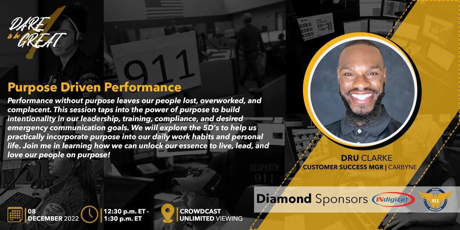 Dru Clarke started as a telecommunicator with Fairfax County in 2013 where he became a calltaker, police and fire dispatcher, CTO, DCJS instructor, EMDi, quality assurance specialist, Training Instructor, and Operations Supervisor. Dru has a passion for the people, and through his instructorships he creates impactful continuous educational seminars that inspire lasting change. He is proactive and personable, with an expertise in public speaking and workplace momentum. He creates, coordinates, and implements new ideas and trainings seamlessly into the workplace. With his keen eye for detail, he transforms missions and goals into action. He puts people before policy, culture before strategy, and receives a "Return on Influence" with each employee he engages. Leading with love, courage, and vulnerability, Dru carves out brave new spaces within the workplace where all can be seen and feel included. He is a catalyst for change, compass for truth, and curator of innovation. In 2020, he launched his training firm ChangeTalk where he teaches a variety of leadership topics to industry professionals. Today, Dru is a Customer Success Manager with Carbyne, the world's largest provider of advanced mobile location services. With Carbyne, Dru hopes to provide front line call takers and dispatchers with the NextGen911 solutions that will enable and empower them to get the right help to the right people every single time.